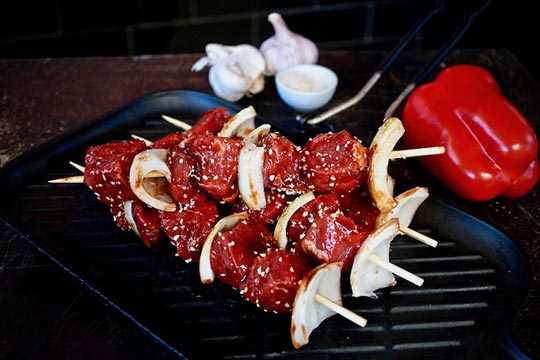 Marinated in Hickory BBQ sauce, great on the BBQ.